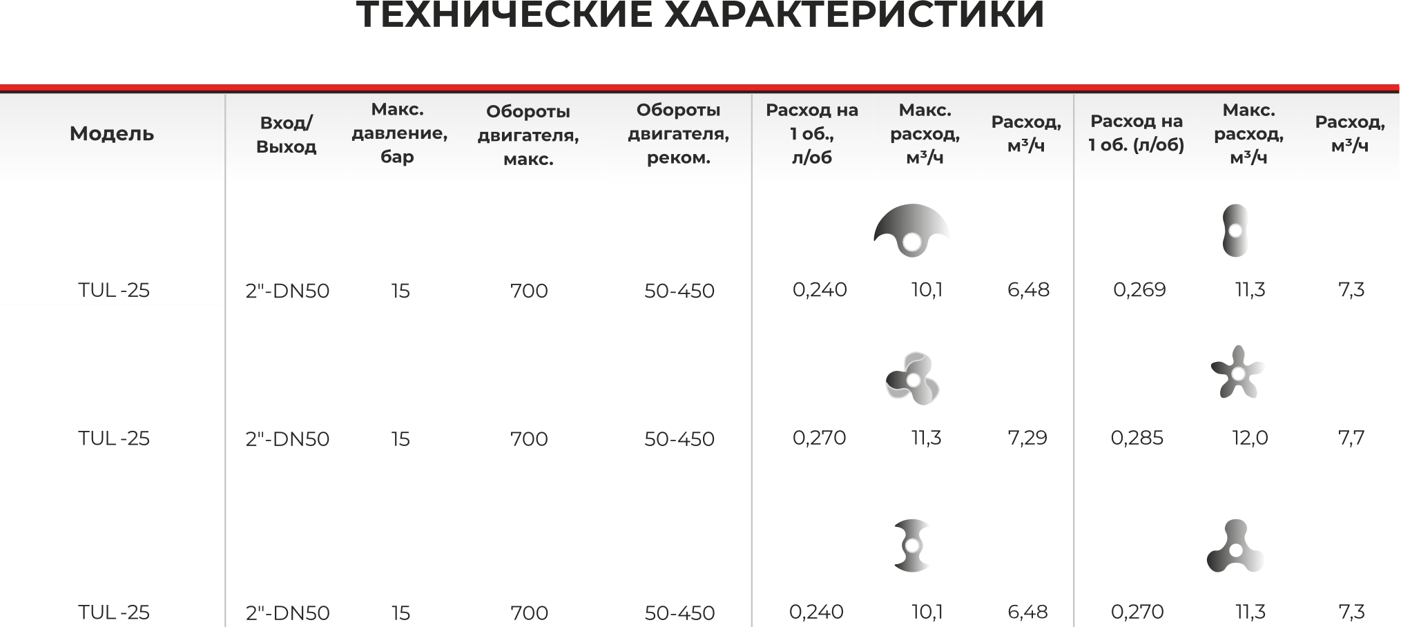 Модель Роторно-кулачковый насос 2-стороннего действия TUL-25